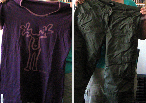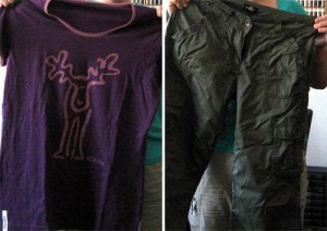 Das T-Shirt soll bis Ende Juli tragbar sein, die Hose bis Ende August… Kommt drauf zurück!! Und die ist nicht so ungebügelt wie sie aussieht! Egal: wer mich im Elch-T-Shirt sieht, darf mir zu einer weiteren Zehnerunterschreitung gratulieren. Weiter Weg. Aber los geht’s!! Und dass mir keiner mit Schokolade oder anderen Dingen kommt!!
