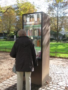 People stop by to drop books they don’t need or want anymore – some maybe even leave books they particularly like, so as to spread the word. And whatever you find there and would like to read, you can take it, read it and either return it or keep it. I really like the idea and even though many books are quite worn and old (just old, not qualifying as antique, I’m afraid), you can sometimes find real gems there. This cupboard is situated in a very nice area of the city where a lot of people pass on their Sunday strolls or on their way home from work. There are a number of comfy benches close by so you can even take a little break and read the first pages before deciding to take it or leave it.