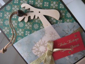 It shows my very favorite motive: a moose! In this case, the moose is an ornament that sits in a little pouch of transparent paper and of course can be taken out and hung on the tree – as a present.