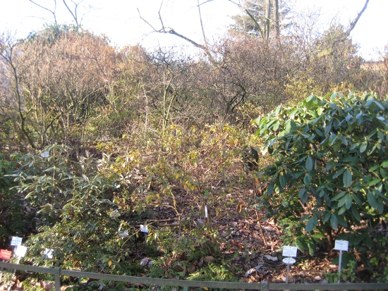 Naja, ich hinke etwas hinterher mit der Veröffentlichung dieses Auftakts einer Fotoreihe, aber ich gelobe Besserung für dieses Einjahresprojekt! Bereits am 28.01.2011 wurde unten stehendes Foto vom Rhododendron-Rondell in den Botanischen Gärten Bonn gemacht und von nun an soll jeden Monat zum gleichen Zeitpunkt (+/- ein paar Tage) ein Fortschrittsfoto gemacht werden.