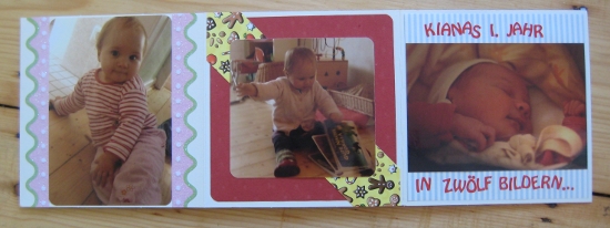 Schon vor Monaten kam mir die Idee, das erste Lebensjahr einer kleinen Freundin in 12 prägnanten Fotos in einem Leporello festzuhalten und drumherum ein bisschen „scrapbooking“ zu betreiben. Nun ist es fertig… und eigentlich wollte ich es gar nicht mehr abgeben.