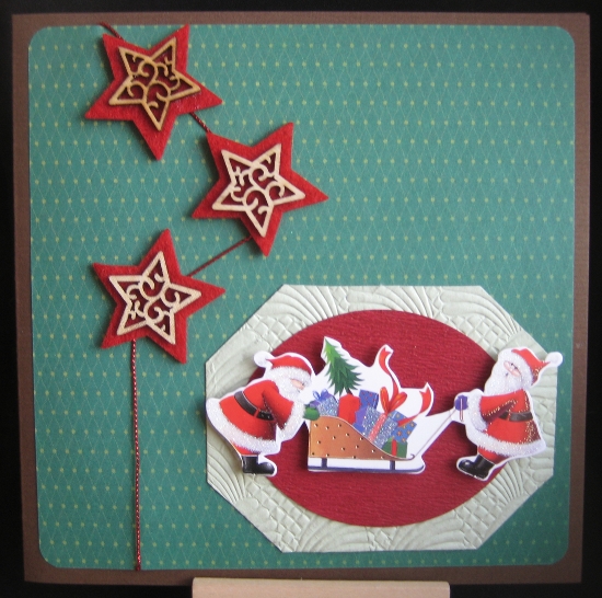 Did I lead you to believe that the Christmas card frenzy had come to an end? I admit, it doesn’t sound natural while it’s 30°C outside. But no! There was a new challenge at Winter Wonderland which asked for cards to be made using Christmas colors. I decided on the red-green palette and made it so it also qualifies for this month’s CCAYR challenge.