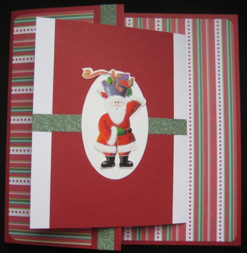 And then I was hooked. One idea following the other – though I have only realized one more yet. Had I been a little faster on this I could also have entered it in last week’s challenge at Winter Wonderland where „present“ was supposed to be part of the creation. Santa is carrying presents and there’s an actual present for the recipient inside: a snowman ornament.