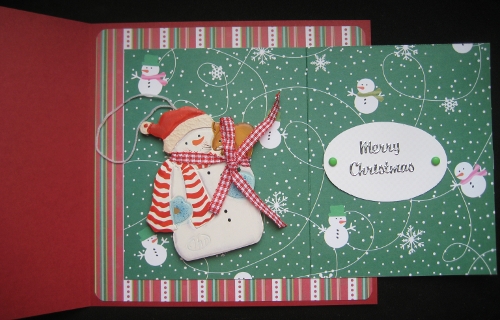 Und dann hatte es mich gepackt. Eine Idee an der anderen – wenn ich auch bislang erst eine weitere umgesetzt habe. Wäre ich etwas schneller gewesen, wäre sie auch noch gut Winter Wonderland untergekommen, wo es letzte Woche darum ging, das Thema „Geschenk“ zu verarbeiten. Geschenke trägt der Santa und es ist innen dann ein Geschenk für den Adressaten: ein Schneemann-Ornament.