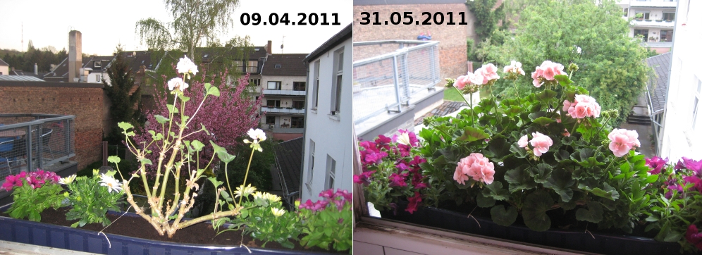 Ich wette allerdings, dass, wenn ich mich im kommenden Jahr traue, NUR die Geranie in den riesigen Kasten zu pflanzen, sie nicht so glänzen und womöglich vollkommen den Löffel abgeben wird…