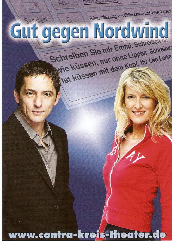 Am vergangenen Samstag war ich im Theater – „Gut gegen Nordwind“ wurde gespielt. Es war ein wohlüberlegtes Geburtstagsgeschenk, denn Schenkerin und Beschenkte hatten das dazugehörige Buch von Daniel Glattauer beide gelesen und genossen. Und fragten sich beide, wie um alles in der Welt man einen e-Mail-Wechsel auf die Bühne bringen will. Nur soviel: es geht! Und es hat viel Spaß gemacht, so dass ich hiermit eine Empfehlung aussprechen möchte für: