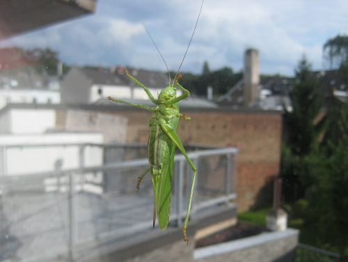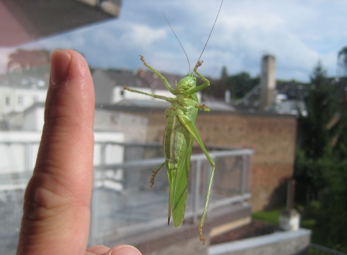 Aber dann… hab ich ihn mir genauer angesehen. Ich weiß ja nicht, welche Größenordnung Insekten erreichen, da wo ihr so wohnt – aber so große Grashüpfer habe ich hier noch nicht gesehen. Das lässt mich vermuten: er war schon wieder auf dem Rückzug und meine Köstlichkeiten haben ungewöhnliche Effekte?? Aber vielleicht ja nur bei Insekten…
