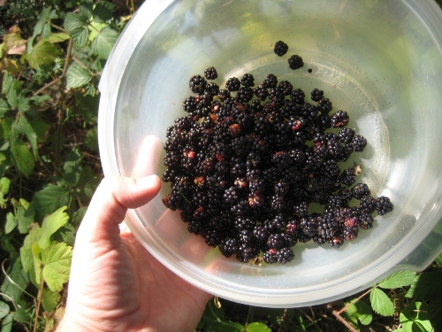 My Eifel days awarded me with summer today! We hope it will return again tomorrow as we didn’t manage to have a barbecue. But on a little stroll with a „long lost“ English friend yesterday I noticed that the blackberries are getting ready to be taken.