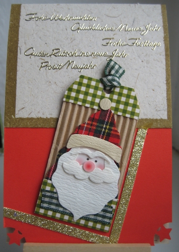 Inspired by Cologne Zoo, at least I’ve been creative again and will participate in two challenges with this entry: „Cards for Men/Boys“ is a real challenge at Winter Wonderland this week. And then there’s „Something New“ at Bah!Humbug! and that is where the Cologne Zoo (Store) comes in. It’s about the paper, the card. It’s… kind of gross when you think about it. Because… well, because it’s made from elephant dung. There, I said it. It’s from Sri Lanka. And that really is a material I’ve never worked with before.