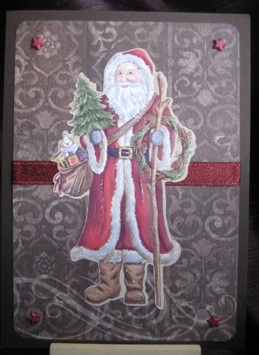 As luck would have it, I can also enter this card in this month’s challenge at the Sparkles Forum. They ask for Santa to be the motif… and as this Santa came with glitter I think it’s more than I could ask for.