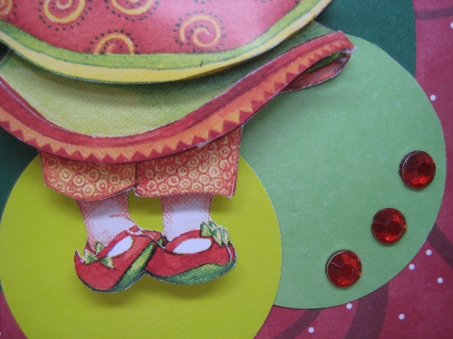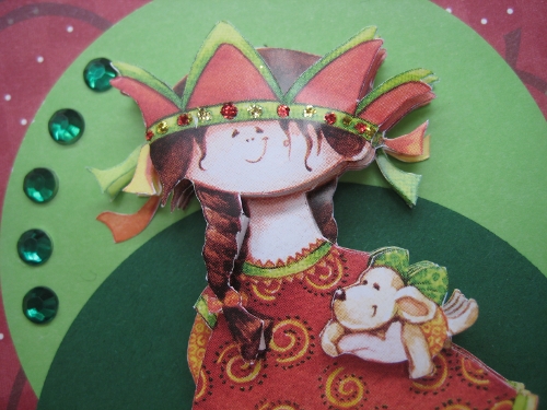 Well, you’ll be able to fully appreciate the swirls only when seeing the card as a whole. Anyway, I almost went crazy trying to incorporate this fortnight’s challenge at ABC Christmas Challenge. First I thought it was pretty similar to that of the humbuggers as spots, swirls or stripes were requested (you guessed it: we’ve reached S). But there was catch: it’s also supposed to be a shaped card.