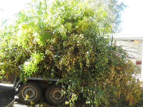 Am Kirschbaum haben sie auch rumgefummelt und als sie dann durch waren, wurden zwei Karren wie diese weggebracht. Kleiner Trost: wenigstens das Martinsfeuer 2011 ist gesichert.