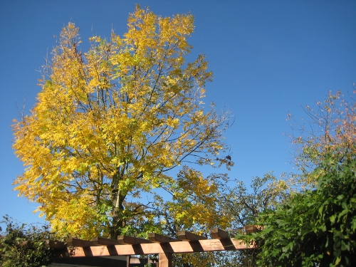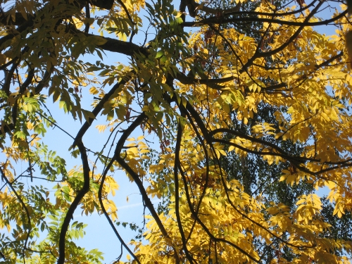 Well, well: I’m being repetitive! But this fall is gorgeous! Another perfect day. And yesterday was just like it. Even though there were two guys getting at our trees.