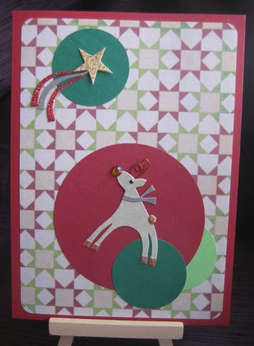 So what else can you do other than concentrating on crafts?? And on we go! Mel over at Sparkles Christmas Challenge made October the Christmas song month: we’re supposed to create a card either showing (parts of) the text of a Christmas song or present an illustration of it. That was a piece of cake as I still had this cute little reindeer…