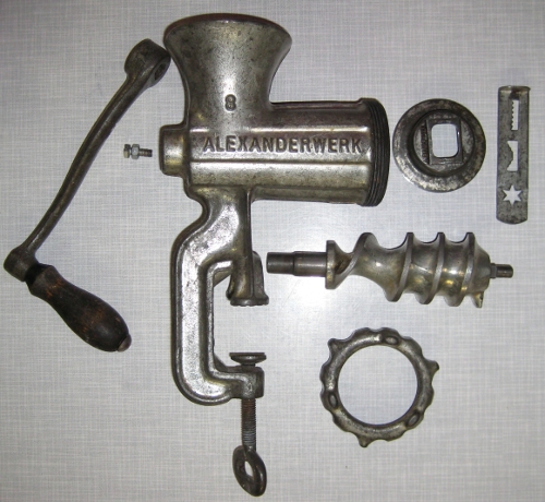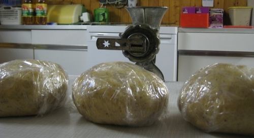 Das ist die Maschine für die Produktion von Spritzgebäck in unserer Kellerküche.