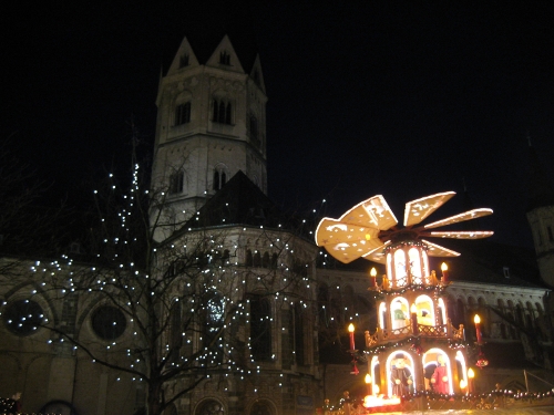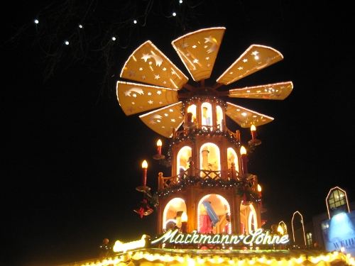 Der zweite Abend in Folge auf dem Weihnachtsmarkt – und wieder hat uns der Regen bald vertrieben… Ich nehme an, die Restaurants drumherum freuen sich über ungewöhnlich viel Zulauf. Zwar hat Eva gestern noch kommentiert, dass es evtl. doch noch Hoffnung auf eine weiße Weihnacht gibt, aber ich bin da eher pessimistisch.