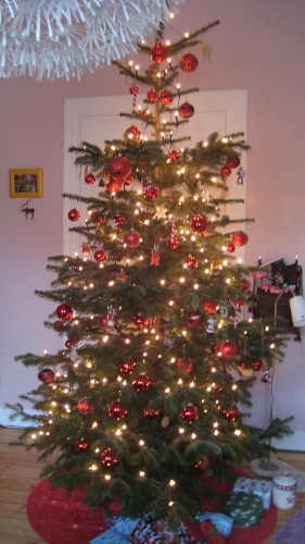 Jedes Jahr inspiziert sie die Geschenke (oder sucht ihr Geschenk?) und den Baum – und hat entgegen aller Erwartungen noch nie eine Kugel runtergeschlagen. Glaube ich.