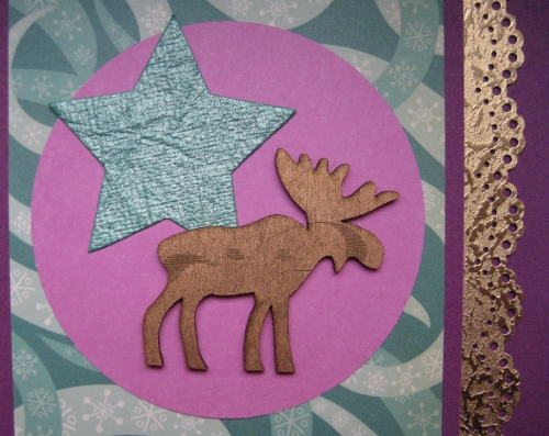 Auf den ersten Blick könnte man ja meinen, dass es bei dieser January 2012 Challenge bei CCAYR darum geht, einen Elche einzubauen. Aber weit gefehlt. Es geht um nicht traditionelle Farben. Bei mir waren das zum Beispiel diverse Pastellfarben und schwarz. Ein bisschen embossing hätte man auch noch machen können, aber ich darauf habe ich verzichtet.