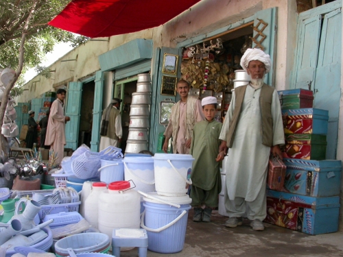 Ein einschneidendes Erlebnis war es, im Basar die Kopie einer 50-seitigen Informationsbroschüre in Auftrag zu geben. […] Die Auftragserteilung hat eine volle Viertelstunde in Anspruch genommen. Schwierig sei das, ob’s denn auch einseitig ginge, zweiseitig wäre soviel Arbeit… Und dann 4 Afghani pro Seite, das sind immerhin teure 8 Cent. Am Ende einigten wir uns auf 150 Afghani pro kopierter Broschüre. Aber dieses Handeln für alles und jedes kostet soviel Zeit. [… ein Kollege] klärte mich auf [darüber, warum dann die Herstellung so lange dauert]: der Kopierer steht in einem Raum ohne Fenster und läuft über einen kleinen Generator, der gerade mal den Kopierer schafft. Also wird das Licht angemacht, zu kopierende Seite eingelegt, Licht aus, kopiert, Licht wieder an, neue Seite eingelegt, Licht aus,…