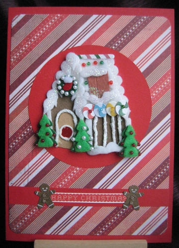 The A Christmas Scene Challenge is on over at Winter Wonderland… And after some pondering I decided on this gingerbread house. That’s what the whole card looks like: