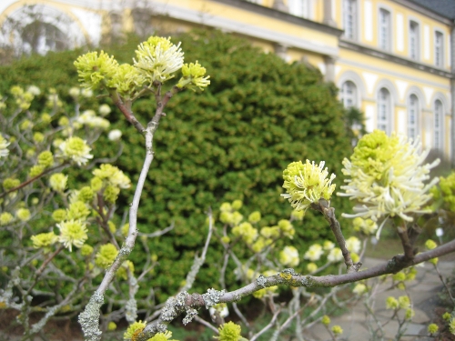Wouldn’t you have guessed: fothergilla major, native to North Carolina and Alabama – but it fits in well in the Rhineland, too, I think. But now: have a nice weekend!