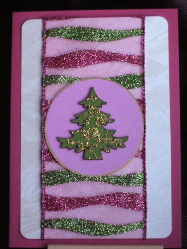 I bought the ribbon in the Christmas sales and it was clear I’d use it for a card one of those days. But it’s really very glittery – or rather, I AM now… Enjoy your evening!