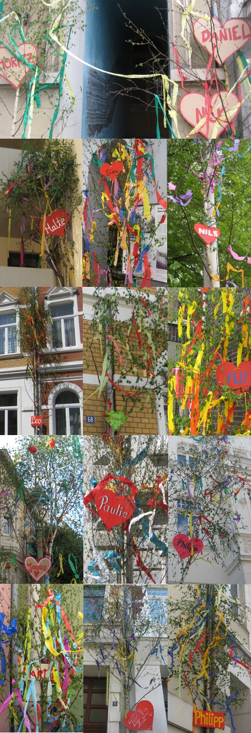 Should you be surprised that I’m writing a post with lots of nice pictures of may poles: I decided this morning not to see that bicycle race – due to the weather (!). It was overcast and the forecast showed a black cloud with lightning… and when I reached the Königstein exit, the Taunus mountains were all but invisible due to fog. And now here it’s a summer day… I knew I’d take the wrong decision 😦 Oh well, enjoy what is left of May 1!