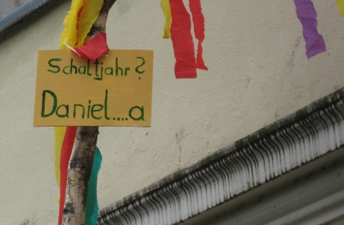 Von der Tradition der Maibäume habe ich an anderer Stelle ja bereits berichtet. Dazu nun eine aktuelle Anmerkung: 2012 ist ein Schaltjahr und da ist ja immer alles ver-rückt. So heißt es die Maibäume betreffend, dass diese von den Frauen aufgestellt werden – ihrem Herzallerliebsten halt. Ich konnte mich davon überzeugen, dass auch diese Tradition lebt: