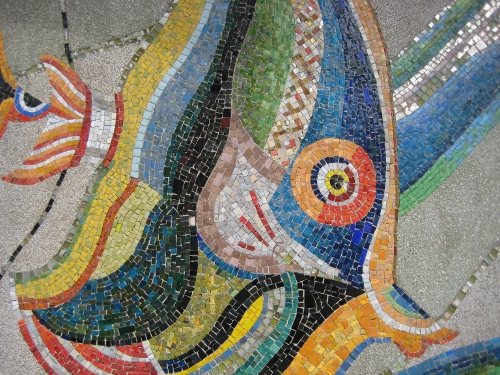 Zum Baubeginn 1894 war dort ja sozusagen grüne Wiese und der Boulevard konnte noch großzügiger gestaltet werden, als das französische Vorbild: er ist 6km lang und bis zu 55m breit. 1909 wurde er dann für den Verkehr geöffnet und ein Bauboom setzte ein, der durch die Eröffnung der U-Bahn 1917 weiter in Schwung kam. Unter den ca. 300 Appartmenthäusern gibt es einige der bedeutensten Beispiele des Art Déco in den USA zu sehen – aber irgendwie sprang der Funke bei mir trotz wunderbarer Mosaike wie an der Außenwand unten nicht über.
