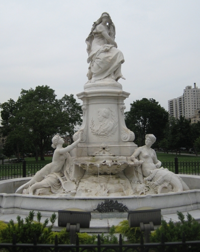 Aber vielleicht konnte ich mich ja auch gar nicht so recht auf Art Déco konzentrieren, weil der Ausgangspunkt für unsere Erkundung der Bronx ein Brunnen im Joyce Kilmer Park war. Die sog. Loreley Fountain. Oder auch… das Heinrich-Heine-Denkmal. Ja, ein Heine-Denkmal in der Bronx. Die wenigsten New Yorker kennen diesen Brunnen und ob überhaupt einer weiß, wer Heinrich Heine ist bzw. war…?