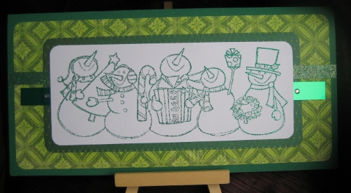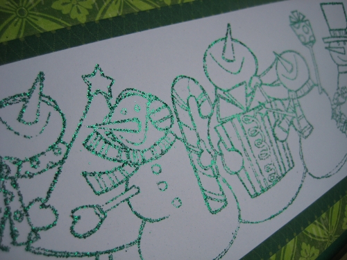 After my unexpected success last week I was looking forward to the new challenge at the Jingle Belles (even more than usual!): a Christmas card in either red OR green. I went with green:
