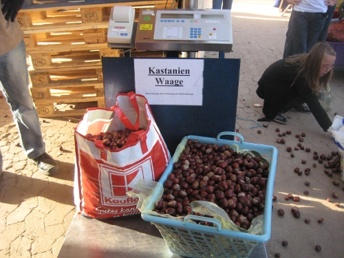 Der Wechselkurs liegt bei 1kg Haribo für 10kg Kastanien oder 5kg Eicheln.