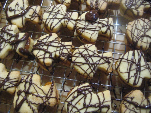 Um die Aktion noch ein klein wenig zu rechtfertigen, habe ich ein neues Rezept ausprobiert, das ich in Ländlicher Weihnachtstraum gefunden hatte: gefülltes Aprikosengebäck. Bei näherer Betrachtung war das Rezept deutlich verbesserungsbedürftig, aber letztlich kam was essbares dabei raus.