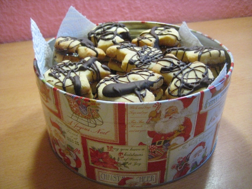 Seit gestern habe ich eine neue Dose. Eine Plätzchendose, ganz klar. Die musste ich haben, ging nicht anders. Nicht, dass ich nicht schon geschätzte 27 hätte, aber Plätzchendosen hat man ja nie genug, zu dieser Jahreszeit. Und da ich sie schonmal hatte, musste sie ja auch gefüllt werden, klar. Ging nicht anders.