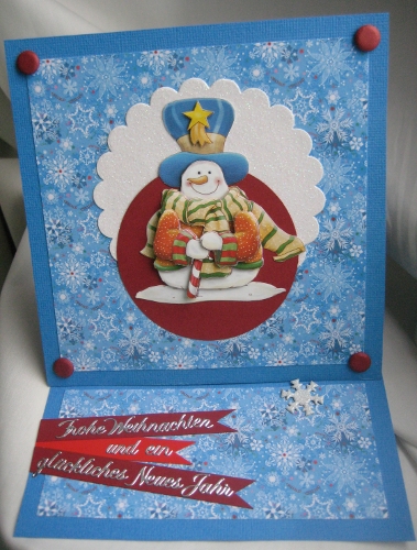 4. Congrats on the win and on trying your first easel card. I like the use of the brad to keep the card up and the snowman is cute. Thanks for sharing at Unstampabelles.