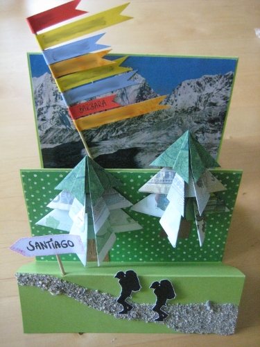 A friend celebrated her 40th birthday – it was a motto party, „Childhood Heroes“. Costumes were mandatory… but of course we also thought about a present. She had asked for money to finance a walk on St. James‘ Way. But it’s not really our style to just give money…