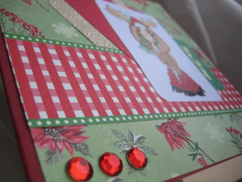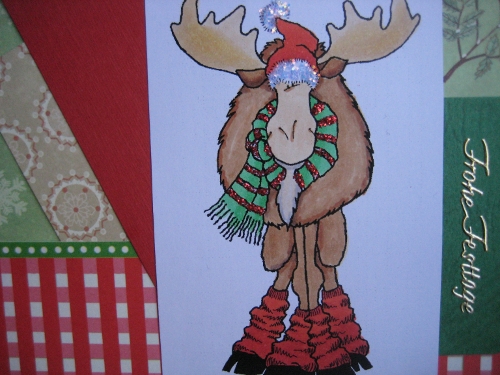 It was high time for a moose again. And this dude, Bundled Up Moose by Eureka!Stamps, worked out well with the current challenge at Christmas Challenges {With Sketches} – another rather recent discovery. The sketch that inspired my card can be found at the link provided above.