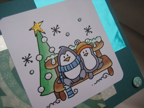 What a weekend! A visitor from Canada, Cleopatra Exhibition, a very German „curry sausage with French fries“, baked a cake, made jam… and FINALLY got down to make cards again. It’s been a month and a half – I hope that never happens again! And guess what? I picked up where I left off: with the „Winter Bench“ digi stamp from Bugaboo. I guess it’s safe to say that I like it!