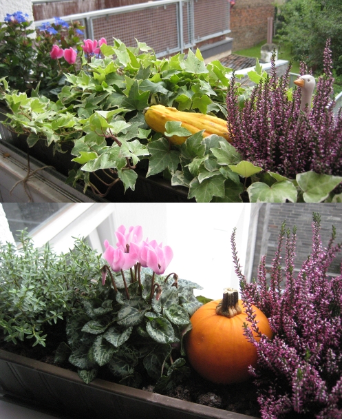 In both instances it’s been a few days already but after I successfully made two flower boxes „go fall“ this morning, it’s time to sit down and tell you about two pieces of happy mail I received this week. Would you believe it: I RECEIVED my first Christmas card of the year. Featuring a moose. It came from another Christmas-crazy Postcrosser from Finland. (If you don’t know Postcrossing, you can get info here and here).