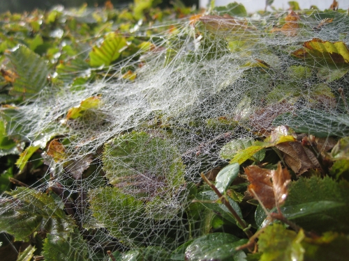 Sonnenaufgang ist nicht meine Tageszeit, auch wenn ich feststellen musste, dass wohl wirklich fantastische Fotos zu machen gewesen wären, im Nebel. Ich habe nur noch die Reste mitnehmen können… und finde Spinnweben ohne Spinnen auch ganz schön.
