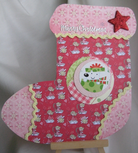 1. oh ♥WOW♥! what a clever and beautiful shaped card design, i love♥LOVE♥love the adorable and perfectly embellished PINK stocking you’ve made! thanks for joining our JINGLE BELLES fun! 🙂