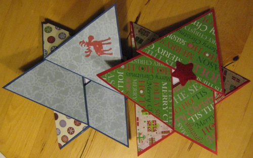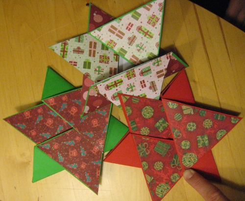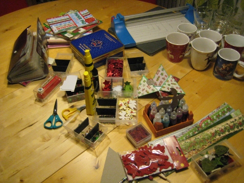 I don’t get around to anything these day – or rather, I get around to so much that I don’t have time left to blog! On Wednesday I held my first ever pre-Christmas Creative Night. I didn’t really know what I was in for but we crafted away until 11 pm, making those star-shaped cards. On the side, we feasted on pomegranate punch, the first gingerbread of the season, yummy cheese-bacon muffins, very healthy tangerines and more. There were a few friends who claimed not to be able to craft – well, I dare you to have a look at the results and tell me which ones are by the people who supposedly do not know how to craft.