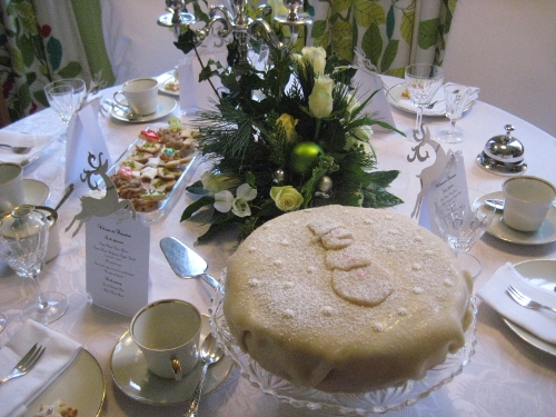 Es war eine schwere Geburt, Stuhlhussen im online Auktionshaus ersteigert, Silber von Oma und Muttern zusammengesucht und poliert, Geschirr und Kristallgläser besorgt – die Tischdecke war ein Albtraum. Der Kerzenleuchter fiel mir zufällig in die Hände (nicht vom LKW), den Blumenschmuck hatte ich anfertigen lassen.