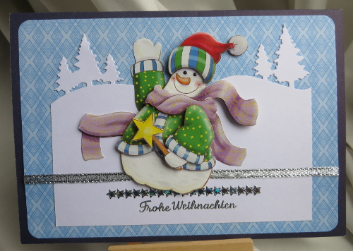 The Jingle Belles‘ All Bundled Up challenge did it! My crafter’s block was lifted – and the weekend has only just started!! Anyway, this challenge is about making a card with at least three layers. Well, I took a very easy way with my image which in itself already has four layers… but I’m just relieved that I finally seem to be getting my mojo back.