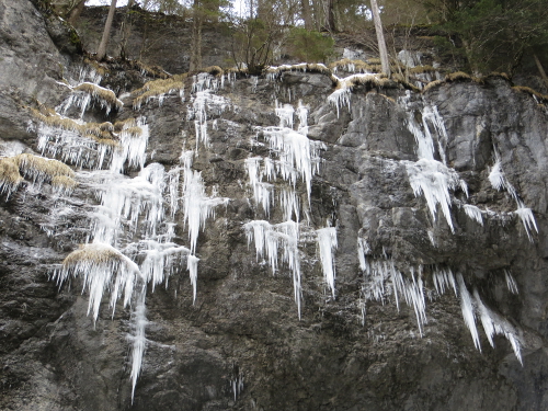 Ich glaube, es war ein Glückgriff, sich die Klamm im Winter anzusehen – im Sommer wird man vor Touristen wahrscheinlich kaum treten können. So gab’s hin und wieder sogar Abschnitte, in denen wir vollkommen allein unterwegs zu sein schienen. Und die vielen Eiszapfen u.ä. hatten natürlich auch einen besonderen Reiz.