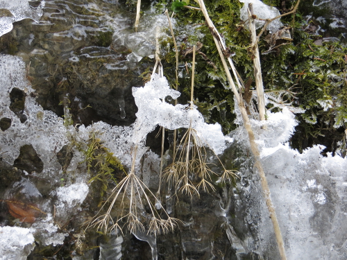 Und diese Wand an Eiszapfen und anderen gefrorenen Formationen sollte doch bei Our Beautiful World in dieser Woche unterkommen, wo die Beiträge unter dem Motto „stachelig“ stehen sollen…