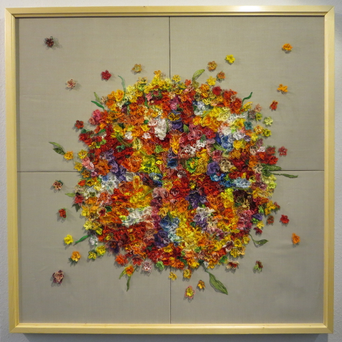 The bloom on the upper picture consists of about 1,600 individual pieces… I have also seen the most exquisite quilt ever. Unfortunately, photography was not allowed as it will soon be touring a number of shows and competitions in the US. If you are interested: google the artist Claudia Pfeil.
