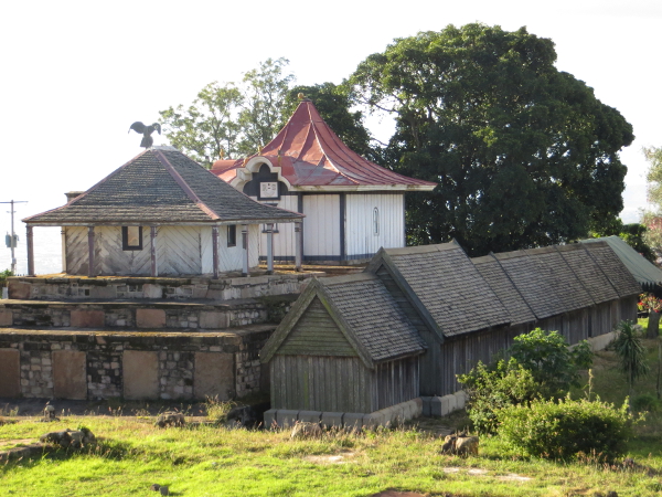 Zum Beispiel diese Königsgräber – neben denen eigentlich noch ein weiterer Palast stand, der aber ebenfalls dem großen Feuer zum Opfer fiel. Eine eigene Kirche hat der Komplex auch: 1881 wurde diese sog. Fiangona, eine anglikanische Kirche, geweiht. Sie steht, vom Eingang aus betrachtet, am anderen Ende des Grundstücks, hinter dem Palast.