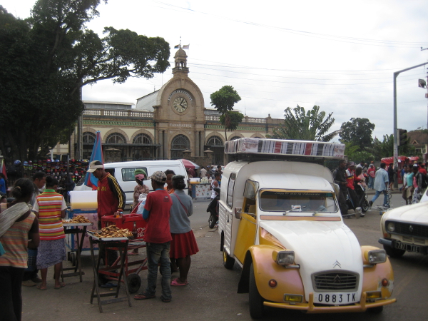 On our way back from the train station which by the way is not in use as such anymore today (it houses a little shopping mall and can apparently be rented for parties also), we soon found ourselves accompanied by numerous beggars and souvenir sellers. Among the latter were Francoise, Chantal and Isabelle which have still to find their equals for endurance. They were our constant followers for more than 20 minutes. On offer were vanilla, little houses made from raffia and filled with spices and similar things. The negotiations went like this:
