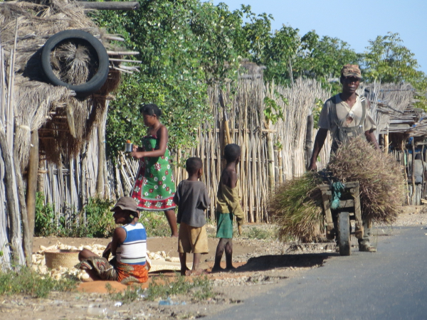 Rice paddies, let alone terraced ones, were soon a thing of the past, instead the landscape got increasingly rocky and the first persons with interesting hairdos were spotted. Some zebus were left, too. This group here makes me think they were a band of outlaws roaming the village…